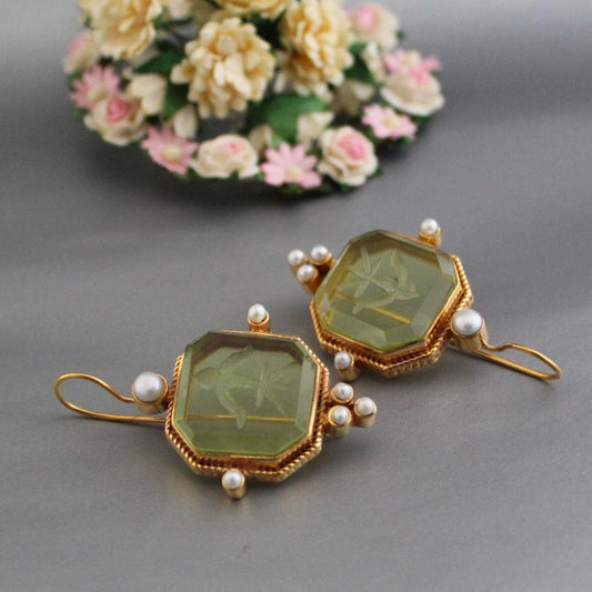 Sale 60%Vintage Green & Pearl Earrings